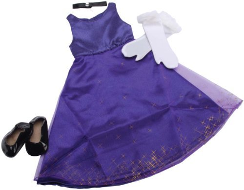 For 18 inch dolls. Fibre Craft has everything you need to round out the wardrobes for your Springfield Dolls. This package contains a purple satin dress featuring a purple tulle over skirt with gold stars, black satin choker with gem, white satin gloves with fur, and black leather slippers. Imported.