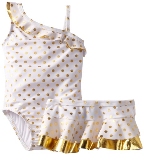 Baby Bunz-Girls Infant Foil Hula Glitz Swimsuit Set, White, 24 Months